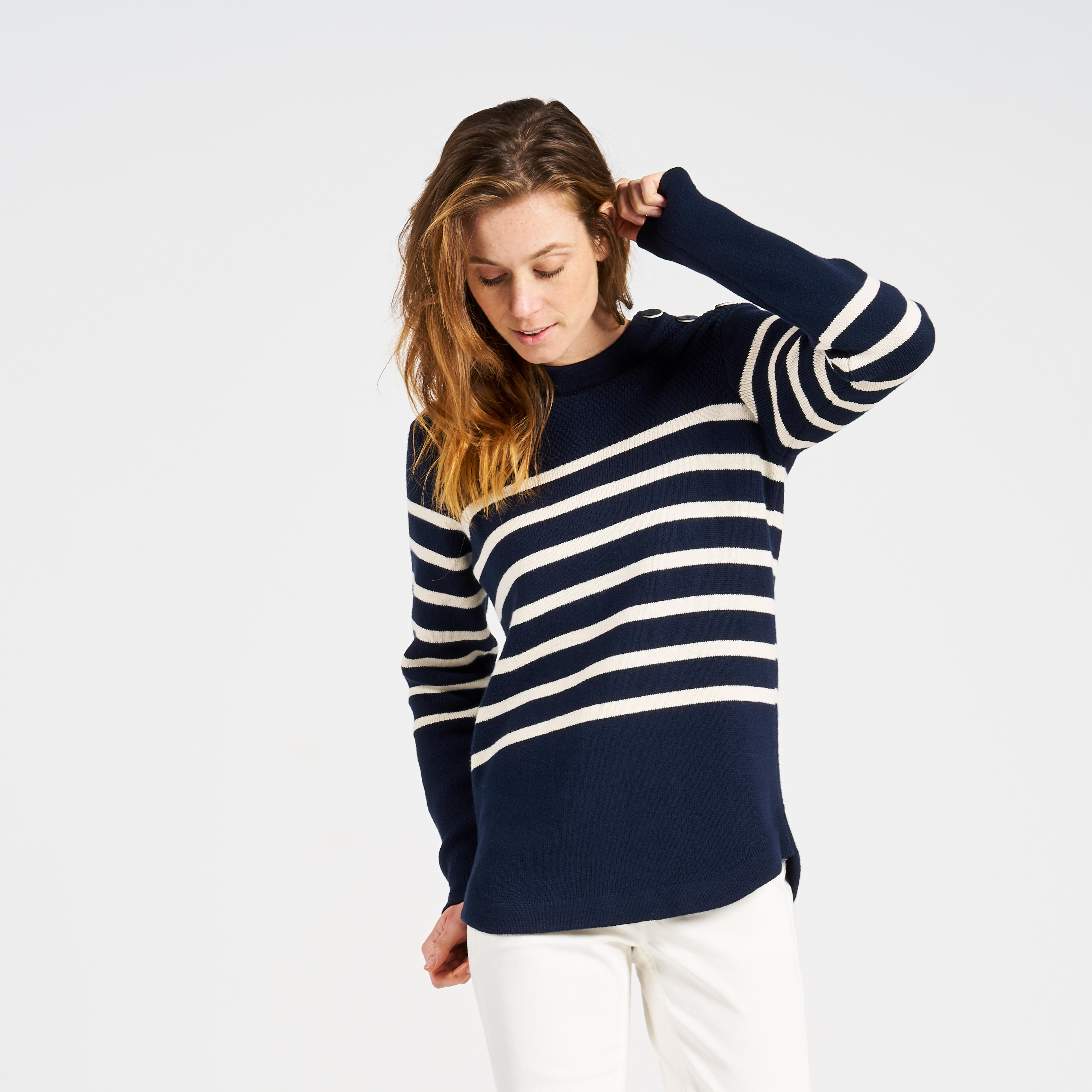 پلیور بافتنی زنانه TRIBORD – سرمهای راهراه/بژ – مدل 100
