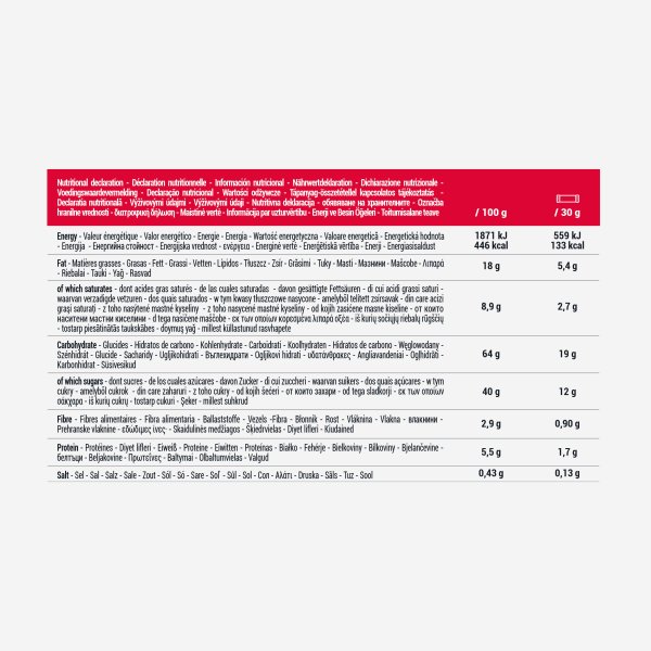 با ترکیب پروتئینهای باکیفیت، میوههای قرمز و شکلات، این محصول یک گزینه عالی برای تأمین انرژی و پروتئین در طول روز است.