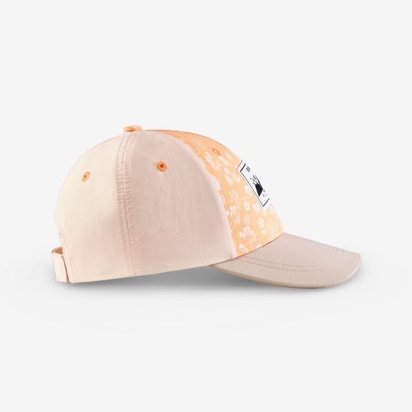 کلاه MH100 از برند معتبر QUECHUA مخصوص کودکان ۲ تا ۶ سال طراحی شده و با ترکیب رنگ جذاب بژ و نارنجی، علاوه بر محافظت در برابر نور خورشید، ظاهری شاد و کودکانه دارد.