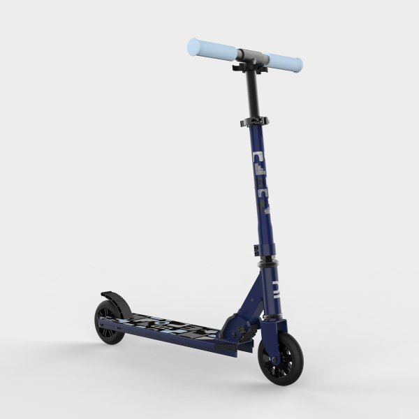 اسکوتر کودکانه مدل MID1 از برند OXELO با رنگ کهکشانی آبی، طراحی شده برای کودکان 6 تا 9 ساله، مناسب برای استفاده در محیطهای شهری و تفریحی.