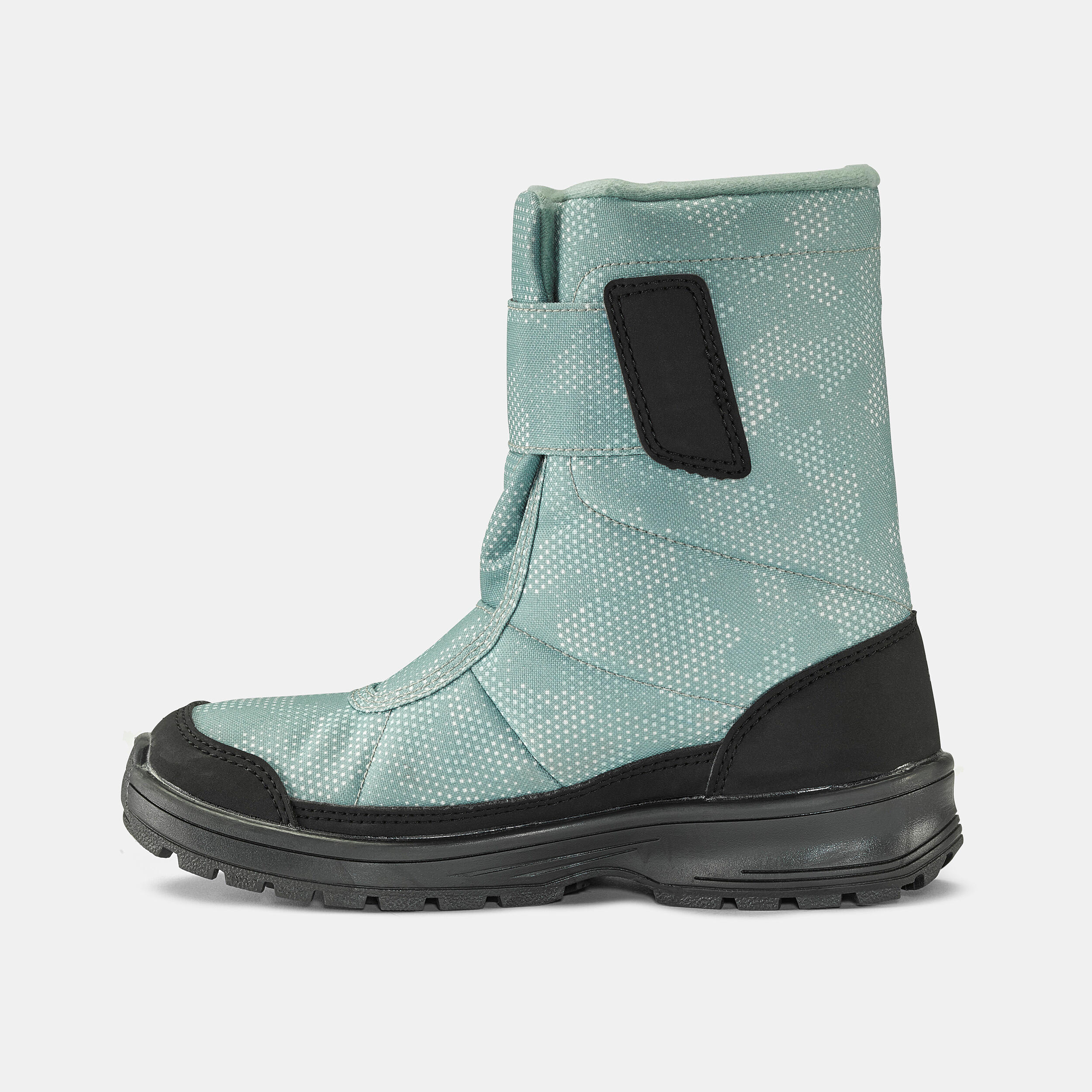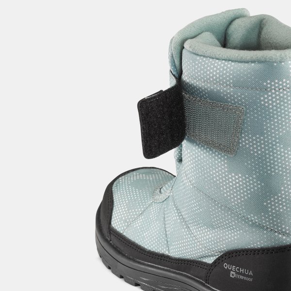 بوت برفی کودکان SH100 برند Quechua با رنگ سبز، طراحی شده تا در شرایط سرد و برفی، کودکان را از سرما، آب و لغزش محافظت کند.