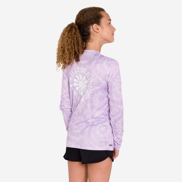 تیشرت آستین بلند کودکانه اولاین مدل 100 Vibes، طراحی شده برای محافظت پوست کودکان در برابر نور خورشید و فعالیتهای آبی در فضای باز.