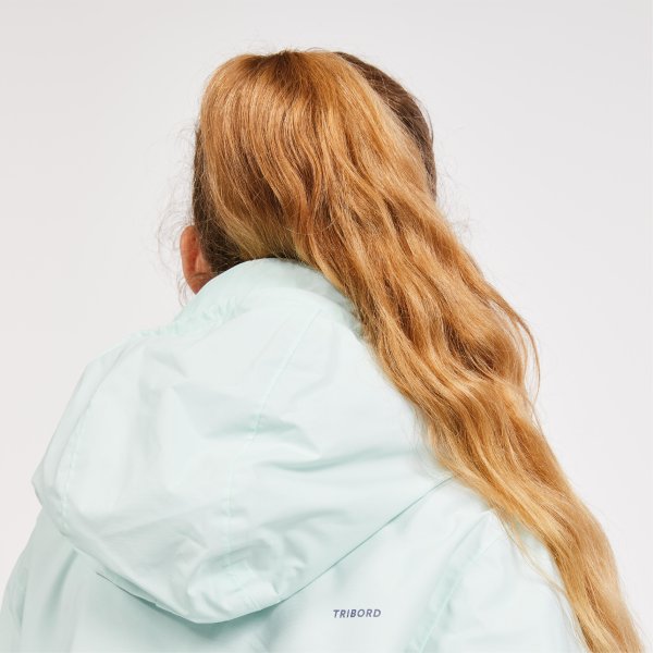 بارانی قایقرانی کودک TRIBORD مدل Sailing 100 با رنگ آبی/سبز، انتخابی ایدهآل برای محافظت کودکان در برابر باد و باران هنگام فعالیتهای دریایی و ساحلی است.