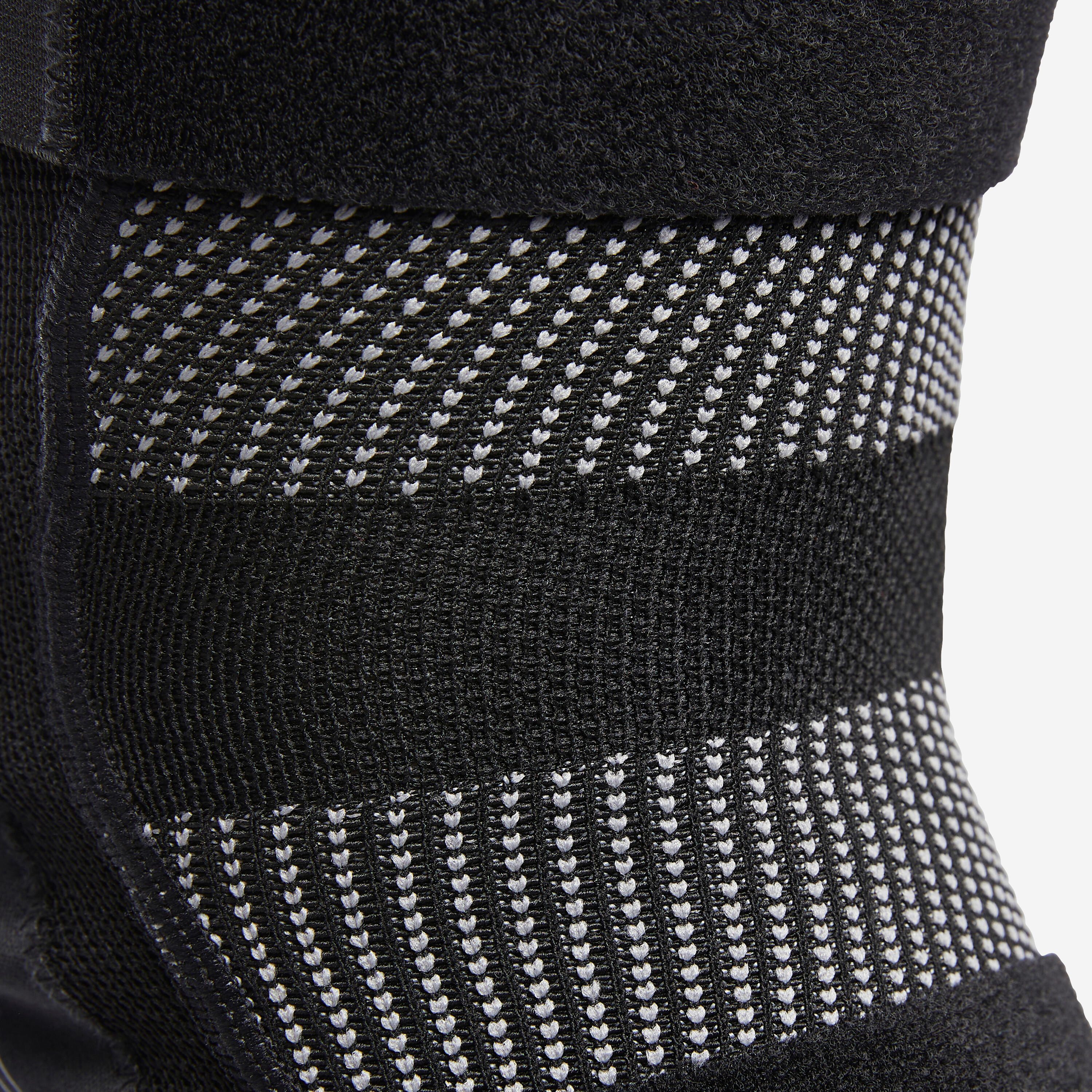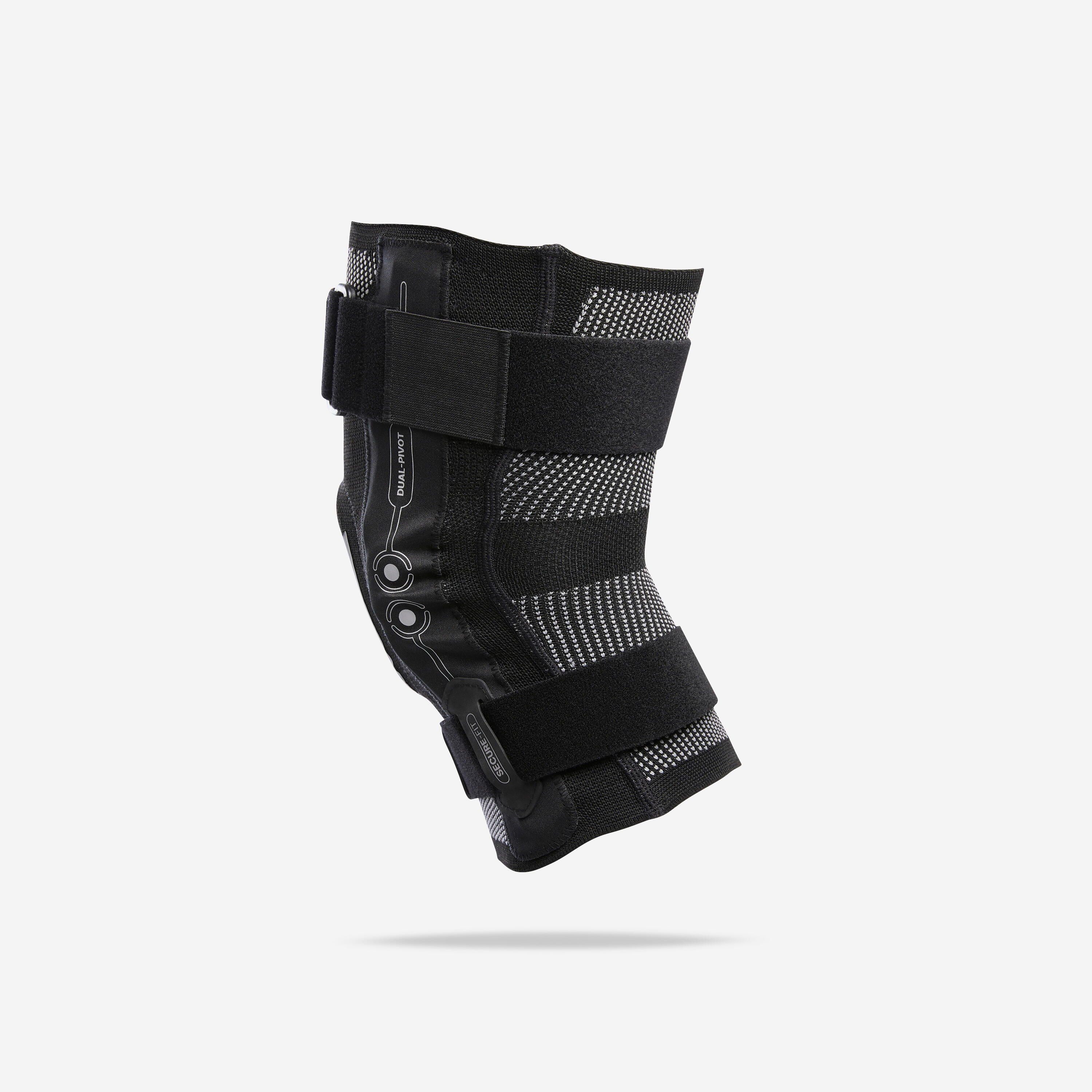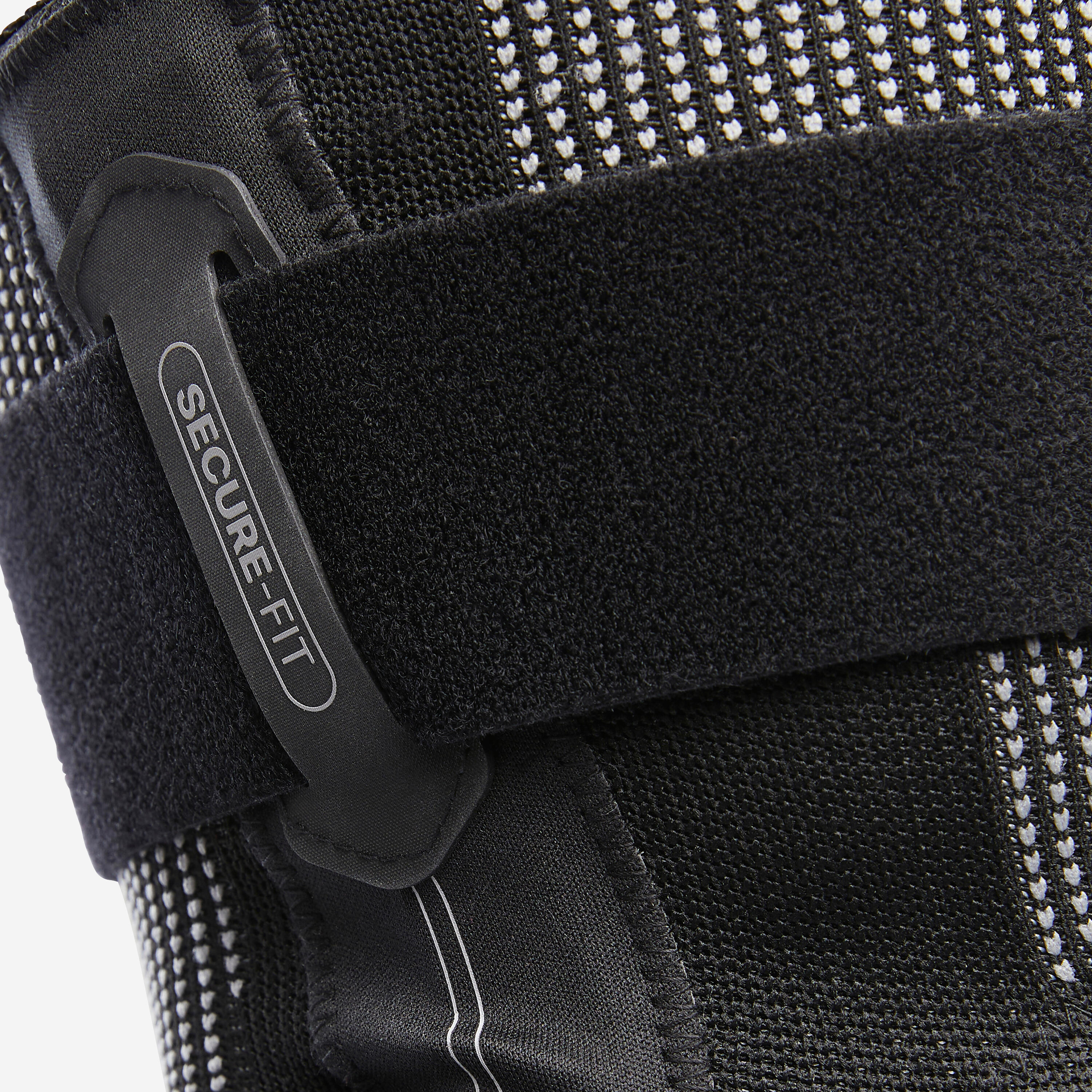 این زانوبند با پارچه فشرده (کُمپرسِیوندار)، دو بند قابل تنظیم و تقویت جانبی اطراف مفصل، ثبات و کنترل عالی روی زانو ایجاد میکند.