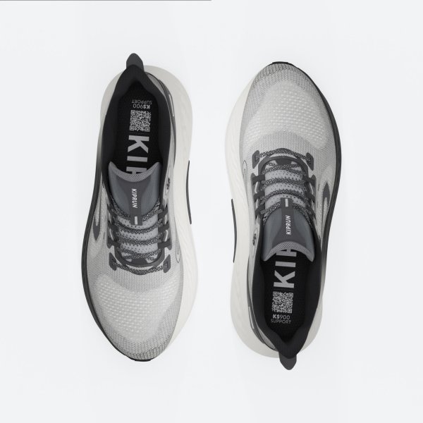 کفش دویدن مردانه KIPRUN مدل KS900 Support با رنگ مشکی و سفید، انتخابی ایدهآل برای دویدنهای طولانی و تمرینات حرفهای است.