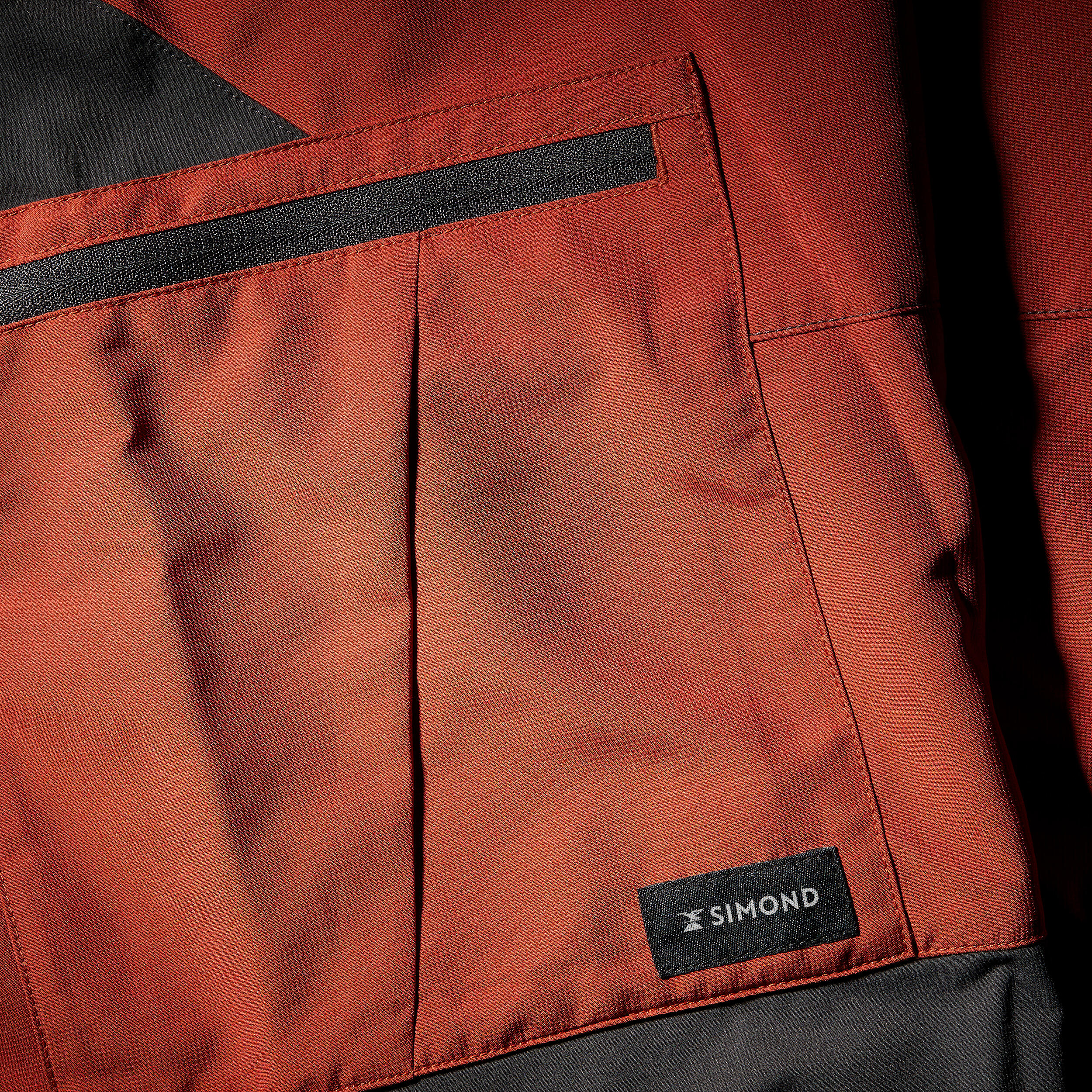 پارچه مقاوم 198 g/m² در نواحی لگن و جلوی پاچه برای محافظت در برابر سایش، با ساختاری کشسان برای آزادی حرکت