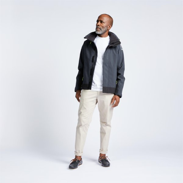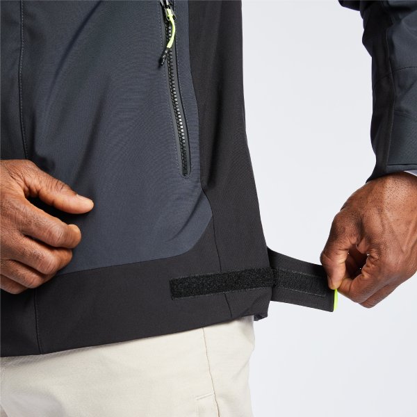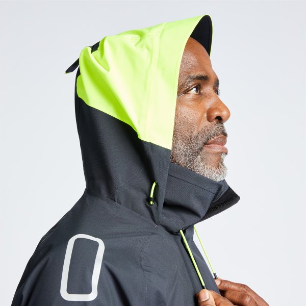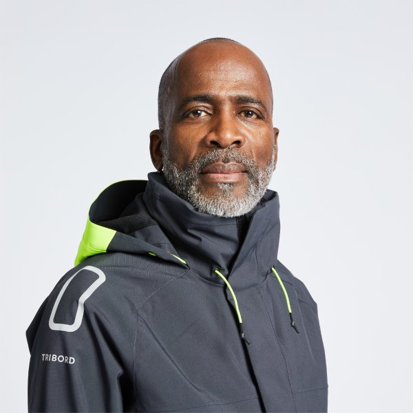 بارانی بادگیر مردانه TRIBORD مدل Sailing 500 با رنگ خاکستری و مشکی، انتخابی ایدهآل برای محافظت در برابر باد و باران هنگام فعالیتهای دریایی و قایقرانی است.