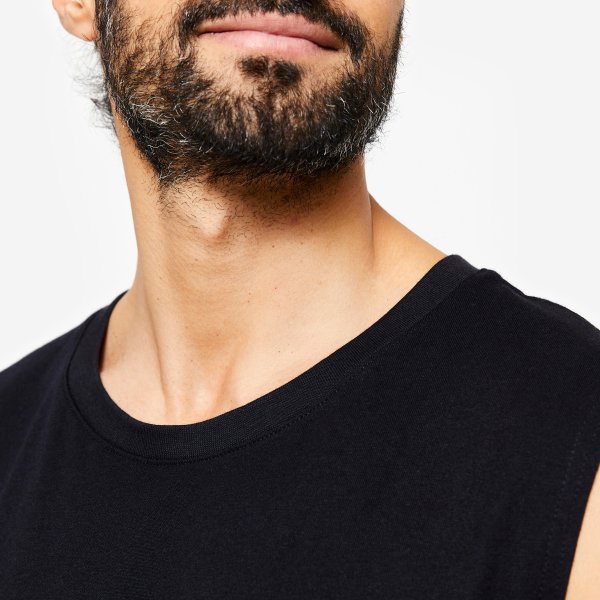 زیرپوش ورزشی مردانه DOMYOS مدل 500 Regular با رنگ مشکی، گزینهای مناسب برای تمرینات فیتنس، جلسات باشگاهی و فعالیتهای سبک ورزشی است.