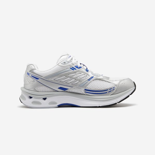 ترکیب رنگهای سفید، خاکستری و آبی، ظاهری اسپرت و شیک به کفش میدهد که برای استفاده در باشگاه، پیادهروی یا حتی موقعیتهای غیررسمی مناسب است.