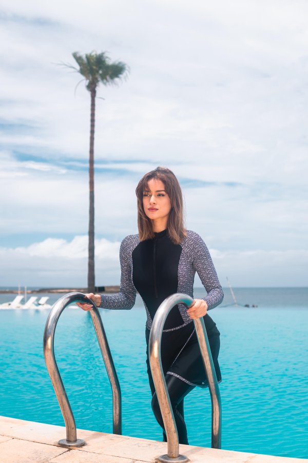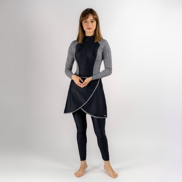 این بورکینی با آستینهای بلند، دامن کوتاه و پوشش کامل پشت، امنیت و راحتی لازم را فراهم میکند و آزادی حرکت مناسبی برای شناگران ایجاد میکند.