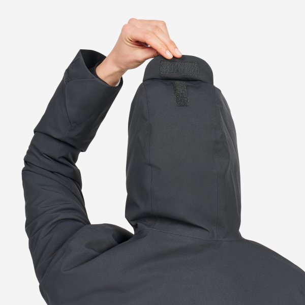 کلاه: متصل به کاپشن، قابل تنظیم از نظر ارتفاع و عمق، آستر الیافی ۱۰۰ گرم، دارای نقاب برای محافظت بیشتر.