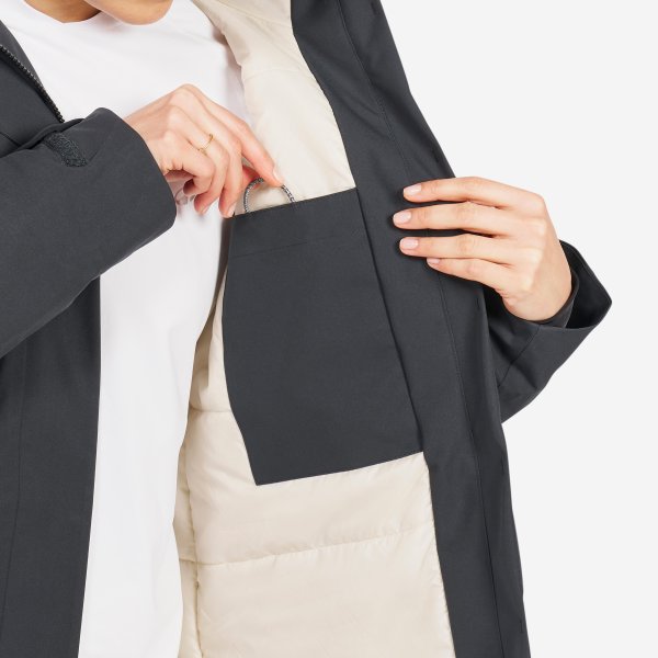 جیبها دارای قابلیت عبور آب هستند (برای دسترسی سریع بدون باز کردن کامل کاپشن).
