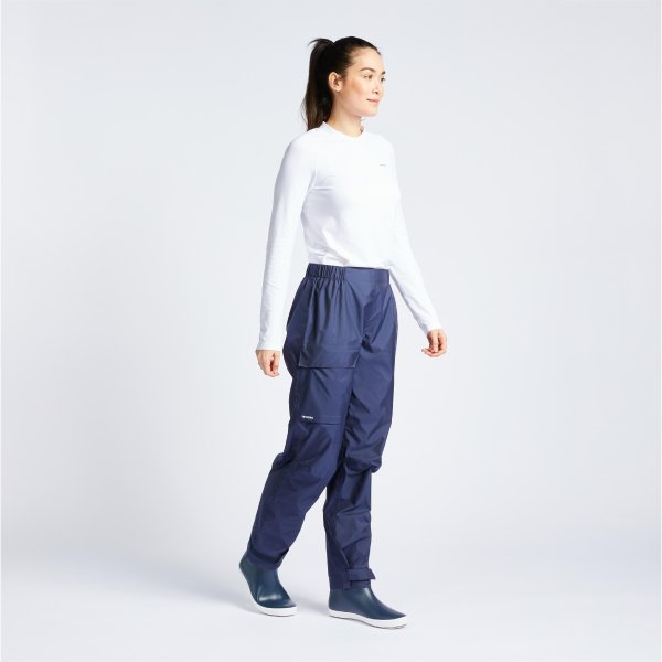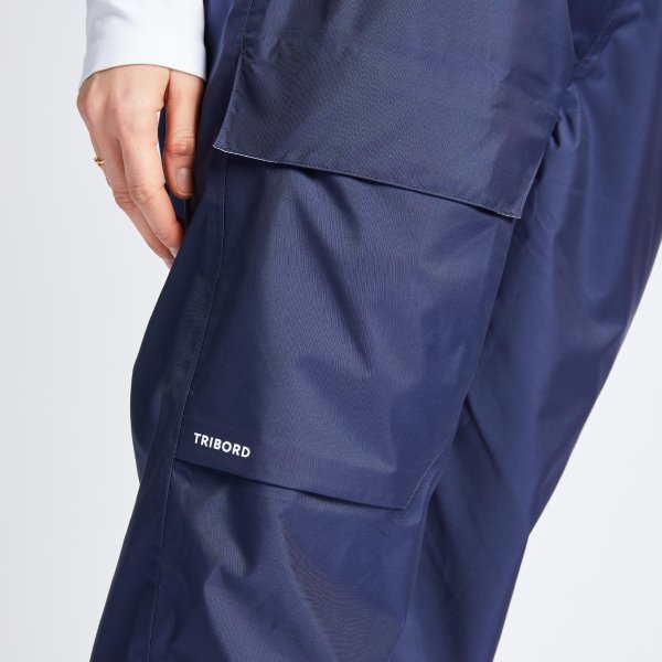 شلوار بارانی زنانه ضدآب TRIBORD مدل Sailing 100 با رنگ سرمهای، انتخابی ایدهآل برای خانمهایی است که در فعالیتهای دریایی و فضای باز نیاز به محافظت کامل در برابر باران و رطوبت دارند.