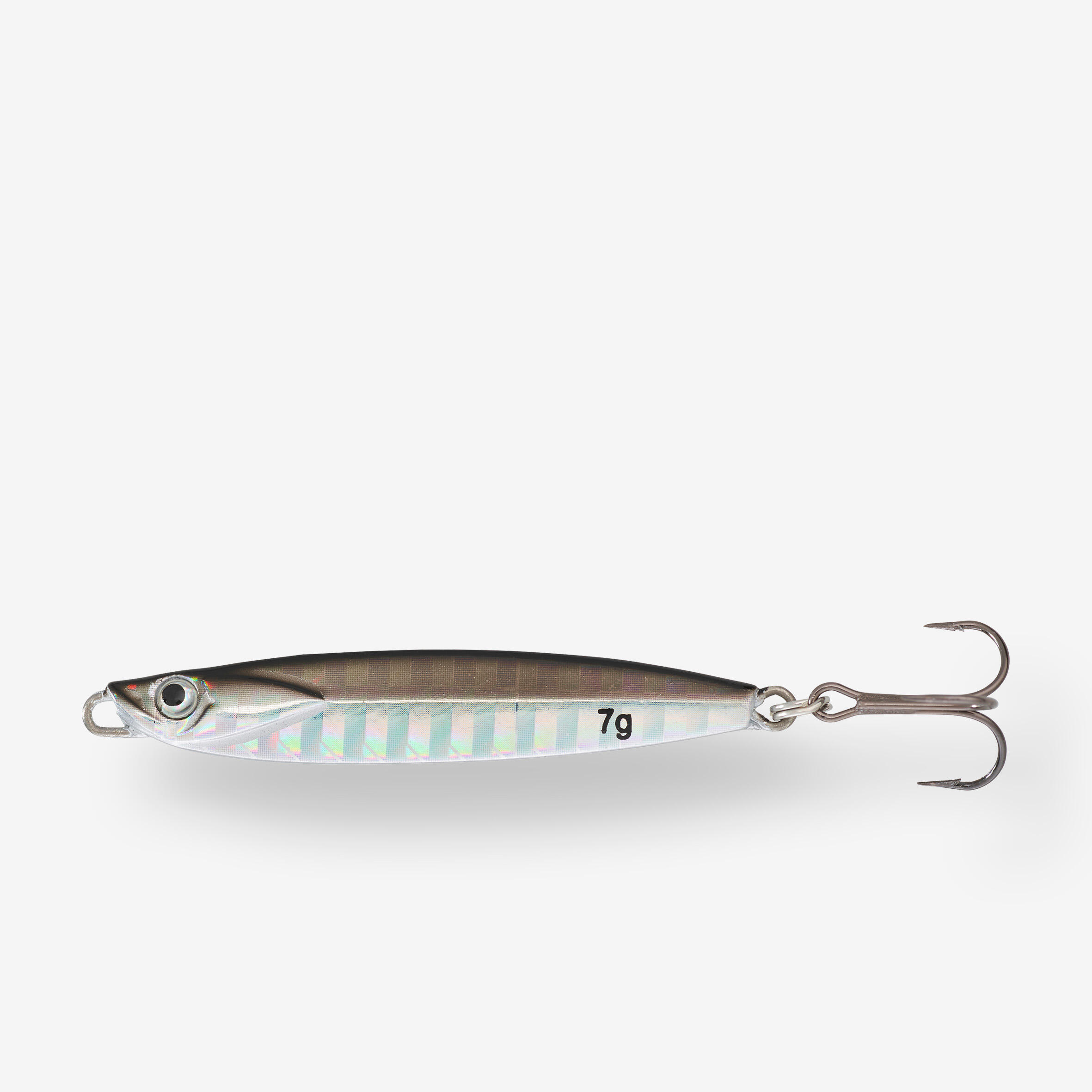 ۷ گرم / طول ۴.۵ سانتیمتر: با قلاب سه شاخه MUSTAD شماره ۱۰ و قلاب تک VMC شماره ۶ بدون فیرودانس