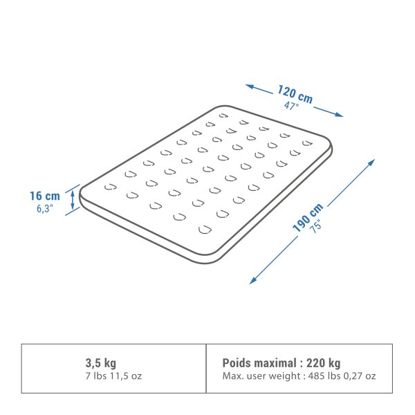 Air Basic QUECHUA با طراحی باد شدن سریع و مواد مقاوم، نصب آسان و استفاده راحت را تضمین میکند.