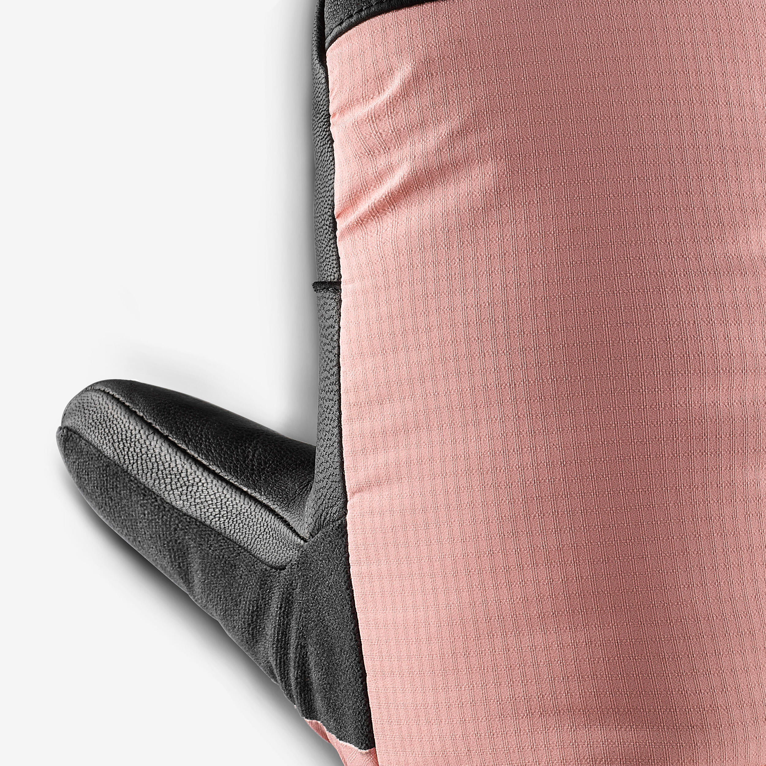 دستکش اسکی تکانگشتی بزرگسال WEDZE SKI 500 با رنگ صورتی، برای افرادی طراحی شده است که در شرایط سرد پیست اسکی به گرمای بیشتر و محافظت بالاتر نیاز دارند.